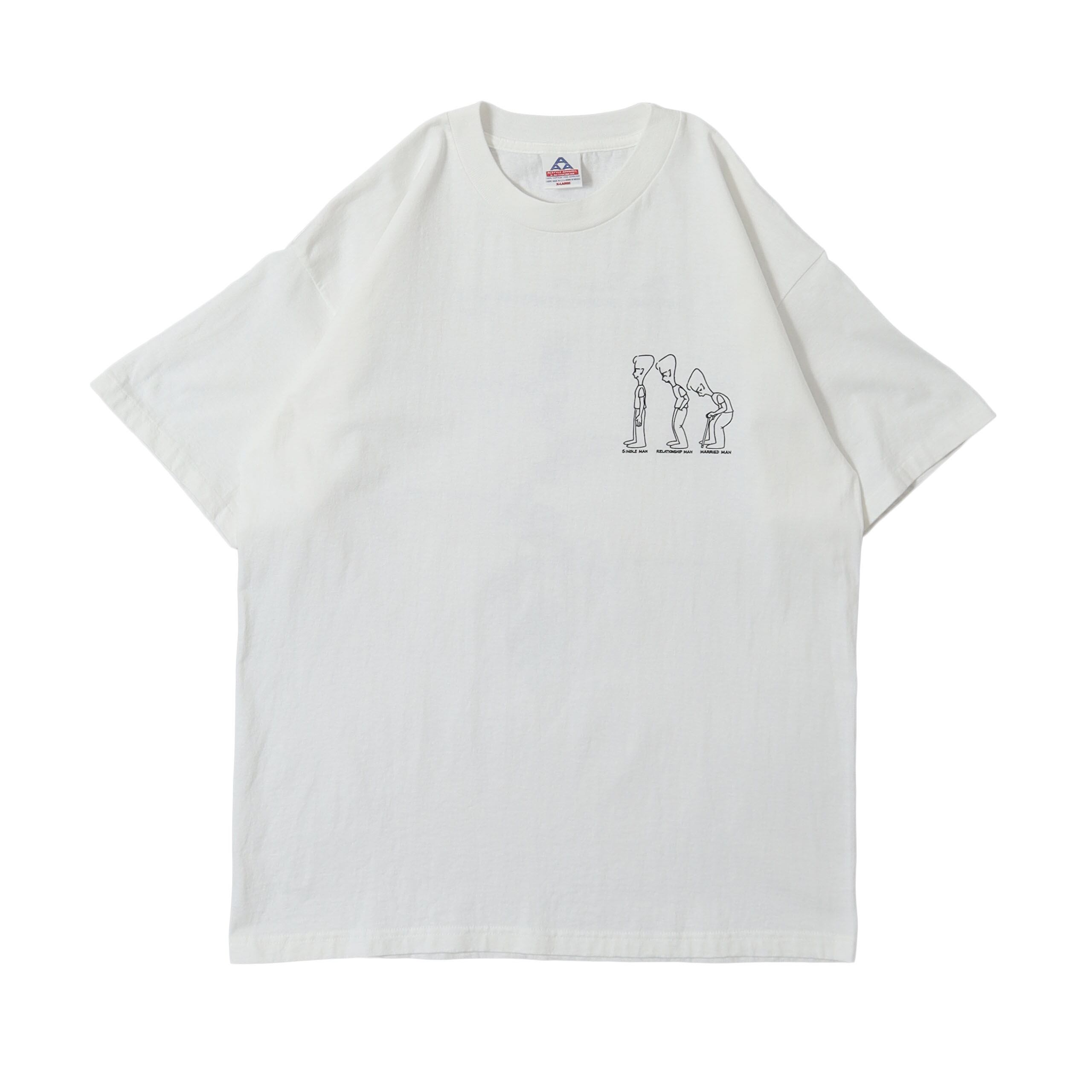 アメリカのコメディアン "Don Barnhart" が "SPINAL DISINTEGRATION OF MAN" と題して回った恐らくお笑いライブ的なツアーのTシャツかと思います。SPINAL DISINTEGRATIONとは脊髄の崩壊のことで、人生の転機によって脊髄が崩壊していく様を表現したプリントがファニーでセンスを感じます。骨のプリントTはたまに見かけますが、この感じは珍しいと思います。サイズも状態もバッチリです。