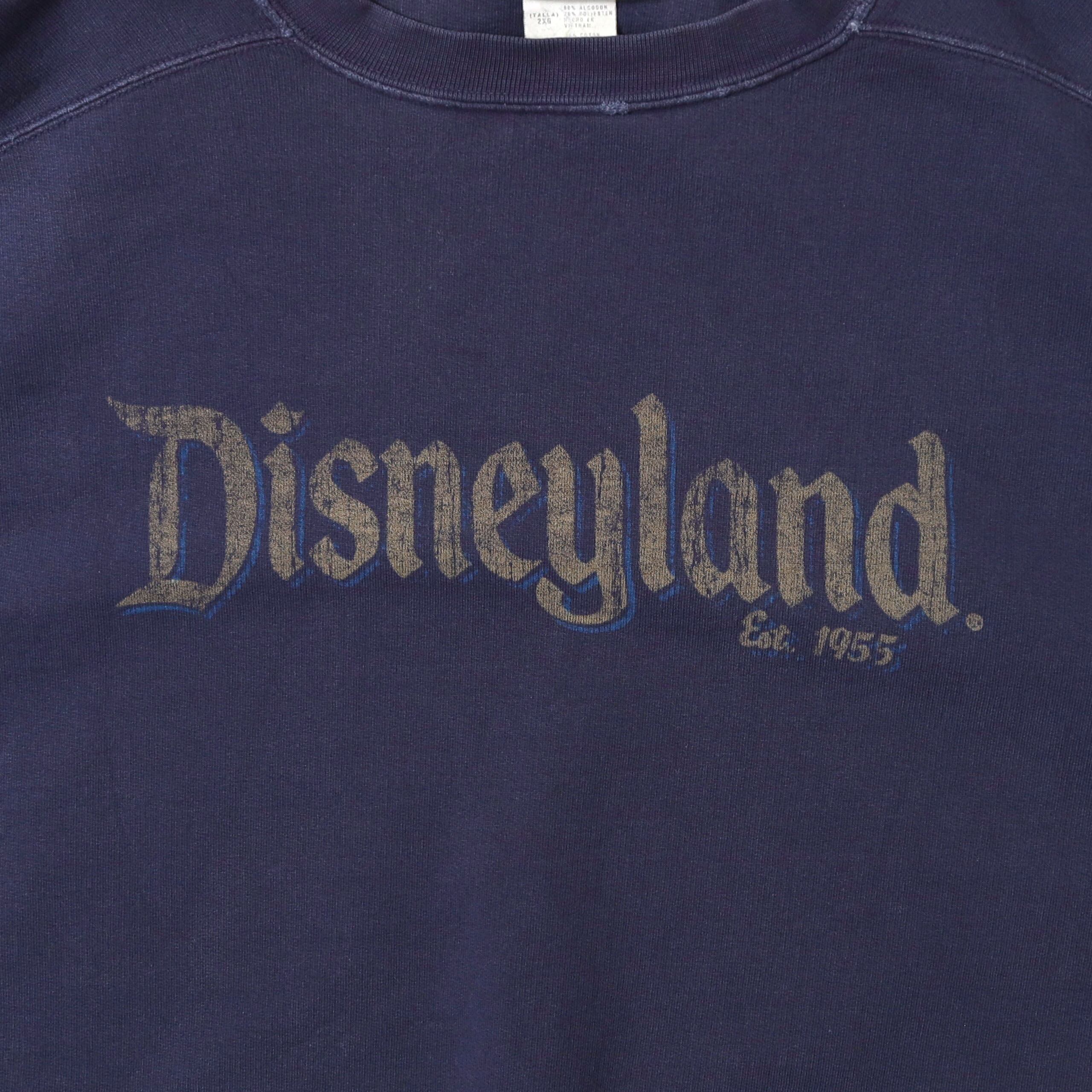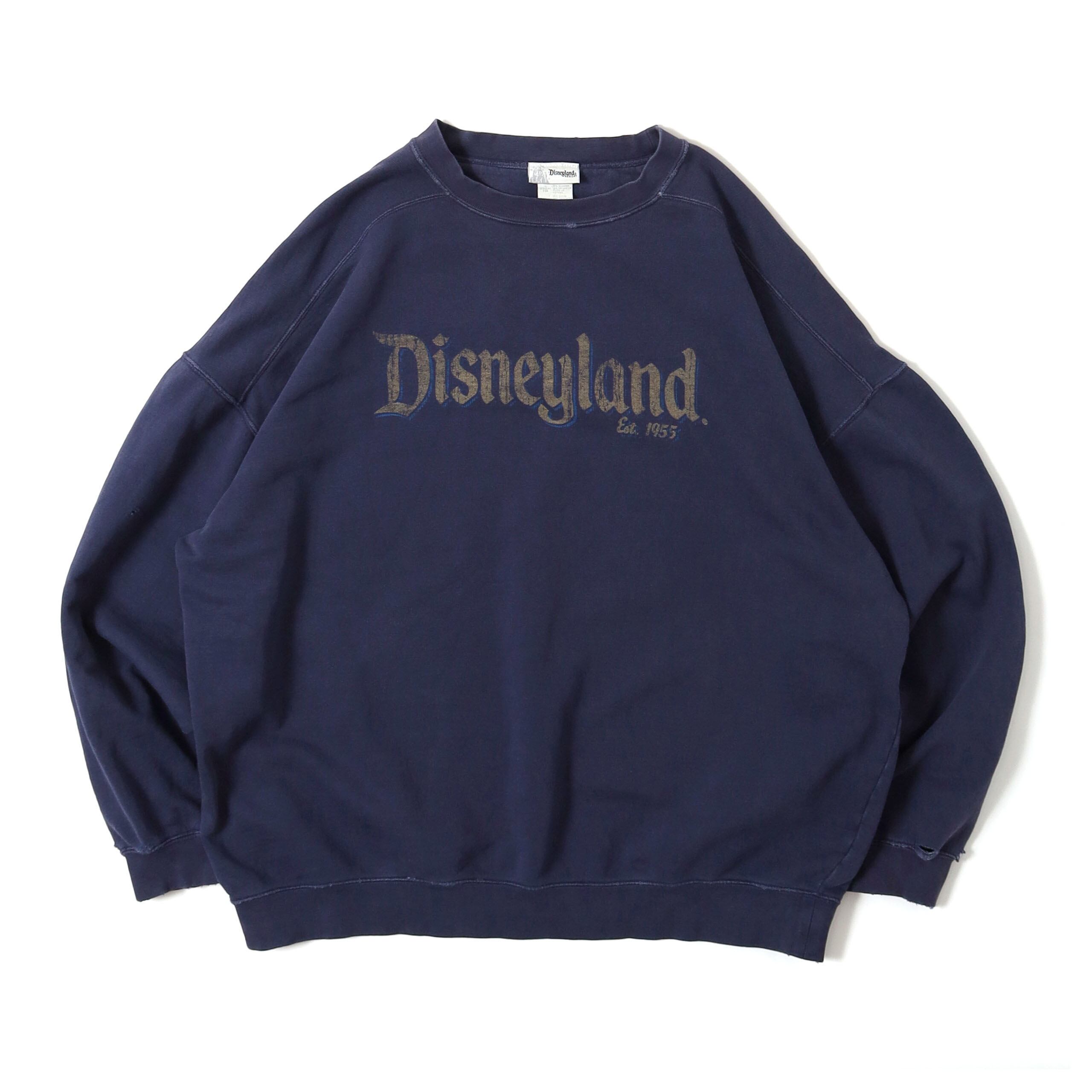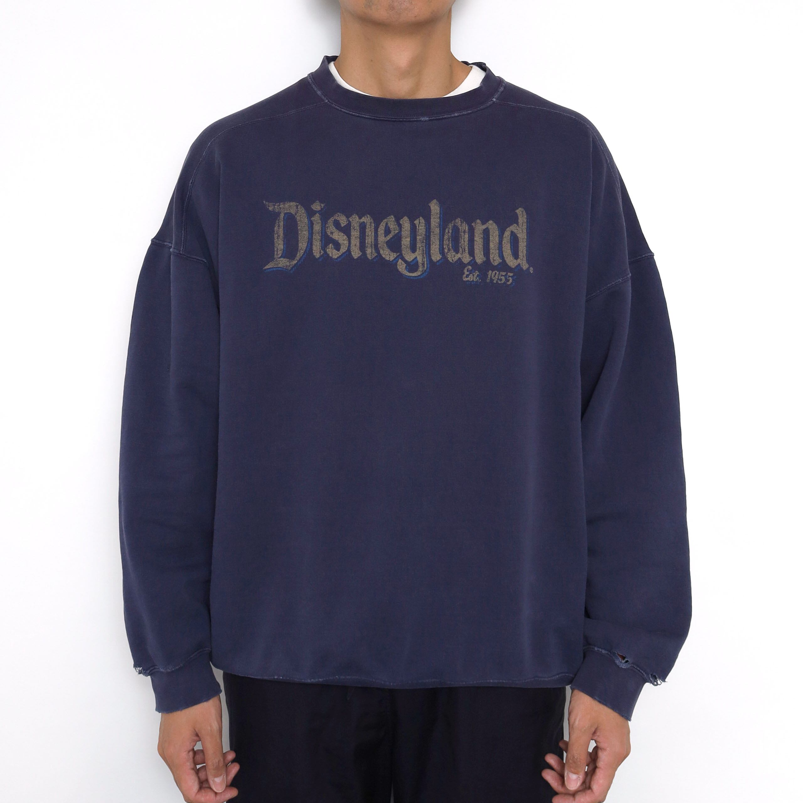 ディズニーランドのスウェットです。ディズニー系は可愛くなりがちなデザインが多い中、こちらはシンプルにフロントにロゴがプリントされただけのソリッドなバランスがかっこいいです。また何よりボディの雰囲気が抜群で、全体的なフェード感やボロまで行かないダメージが最高の1枚です。大きめサイズで着てみるとシルエットも抜群です。