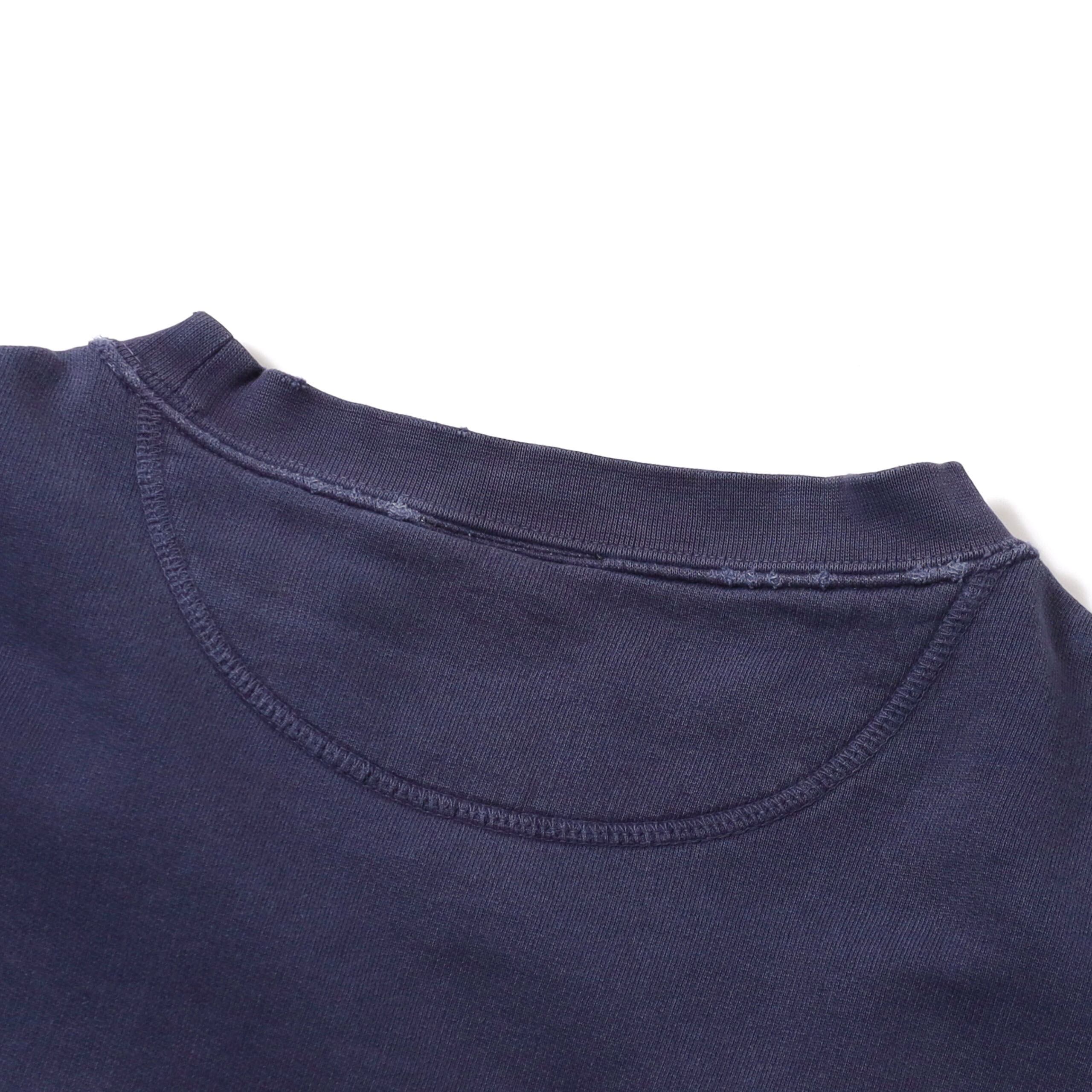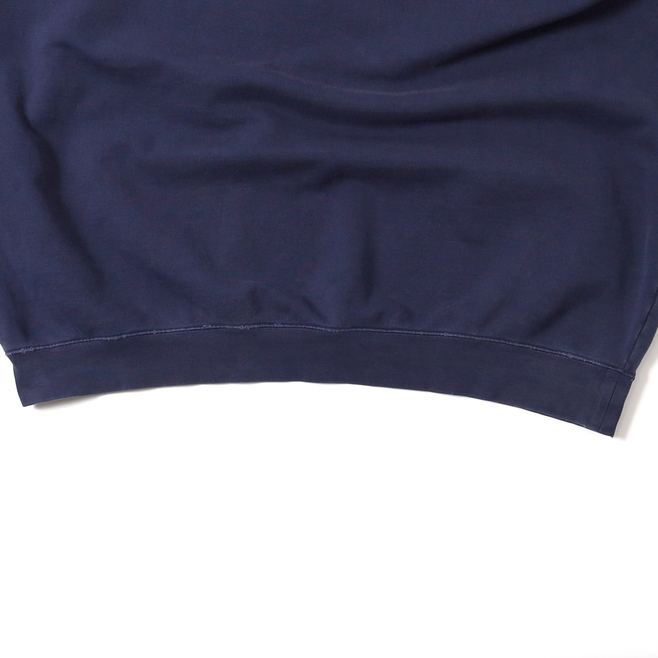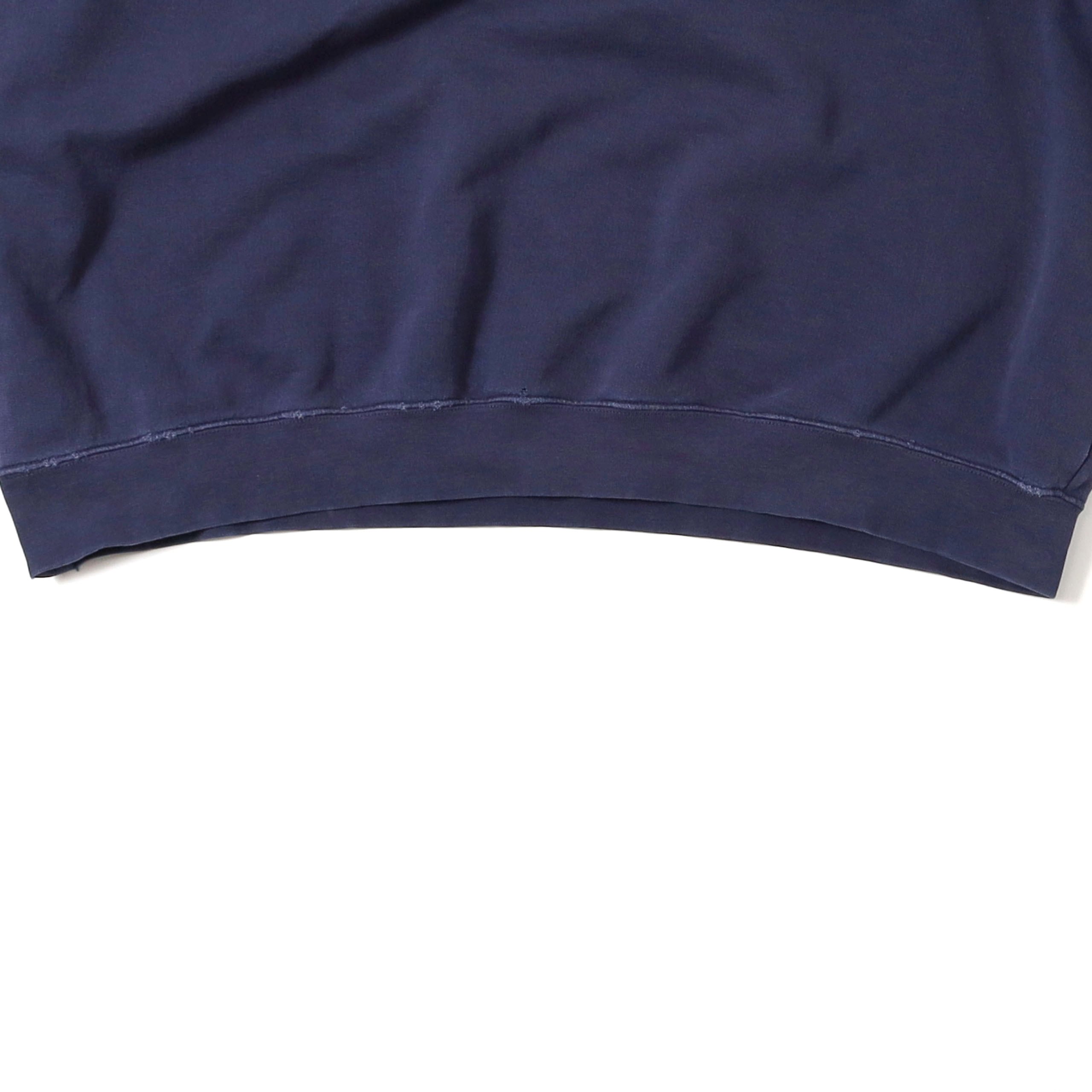 ディズニーランドのスウェットです。ディズニー系は可愛くなりがちなデザインが多い中、こちらはシンプルにフロントにロゴがプリントされただけのソリッドなバランスがかっこいいです。また何よりボディの雰囲気が抜群で、全体的なフェード感やボロまで行かないダメージが最高の1枚です。大きめサイズで着てみるとシルエットも抜群です。