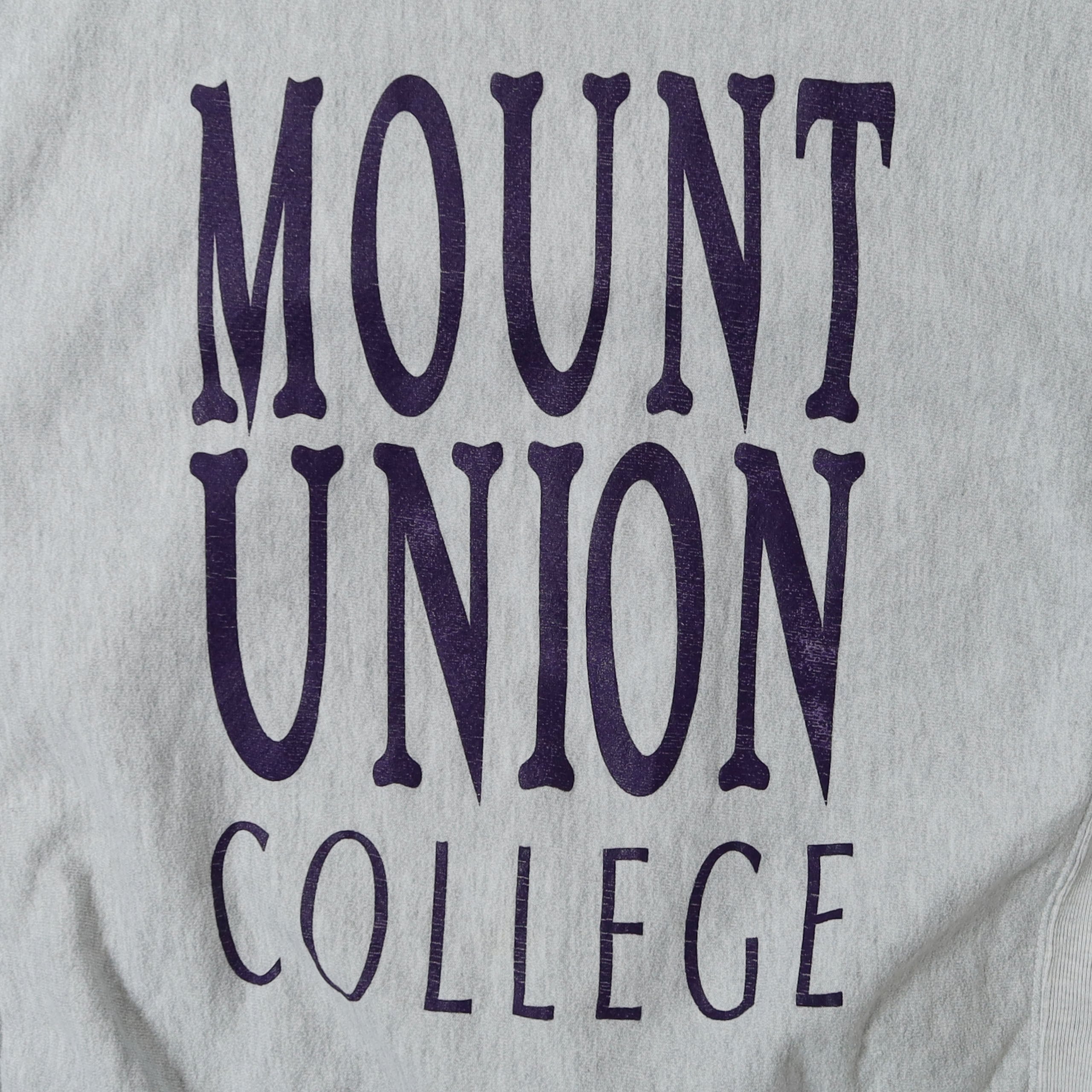 アメリカのオハイオにあるリベラルアーツの大学 "MOUNT UNION COLLEGE" のスウェット。カレッジものには珍しいバランスのプリントが目を惹く1枚で、グレーボディにブラックやネイビーではなくパープルのプリントというのにグッときます。カレッジものらしくリバースボディなのも嬉しいポイントです。