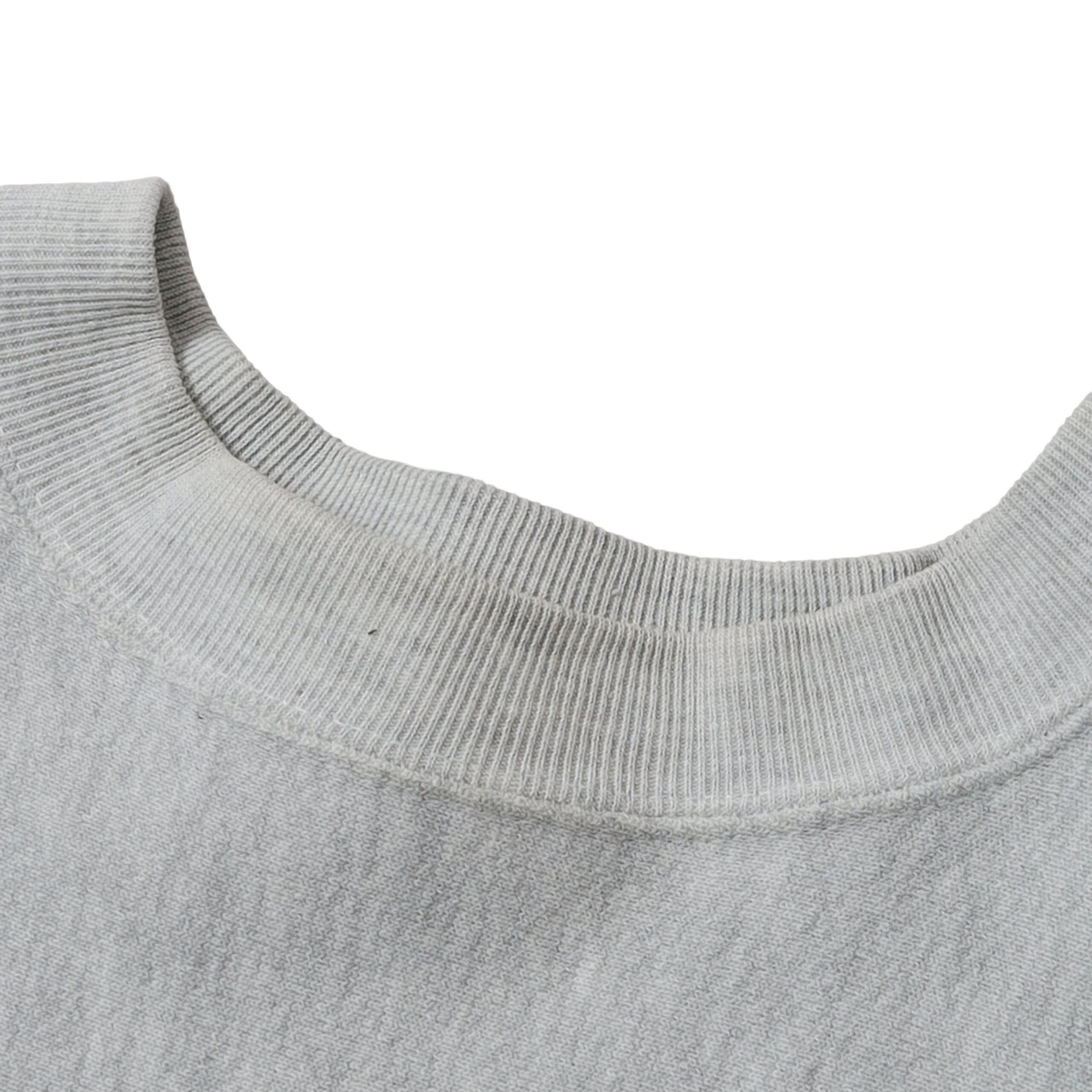 ネック表と裏にやや変色(画像5,6枚目)、左袖前と後身頃裾リブに青い色移りのような箇所(画像7,8枚目)、左袖先に薄シミ(画像9枚目)あり。