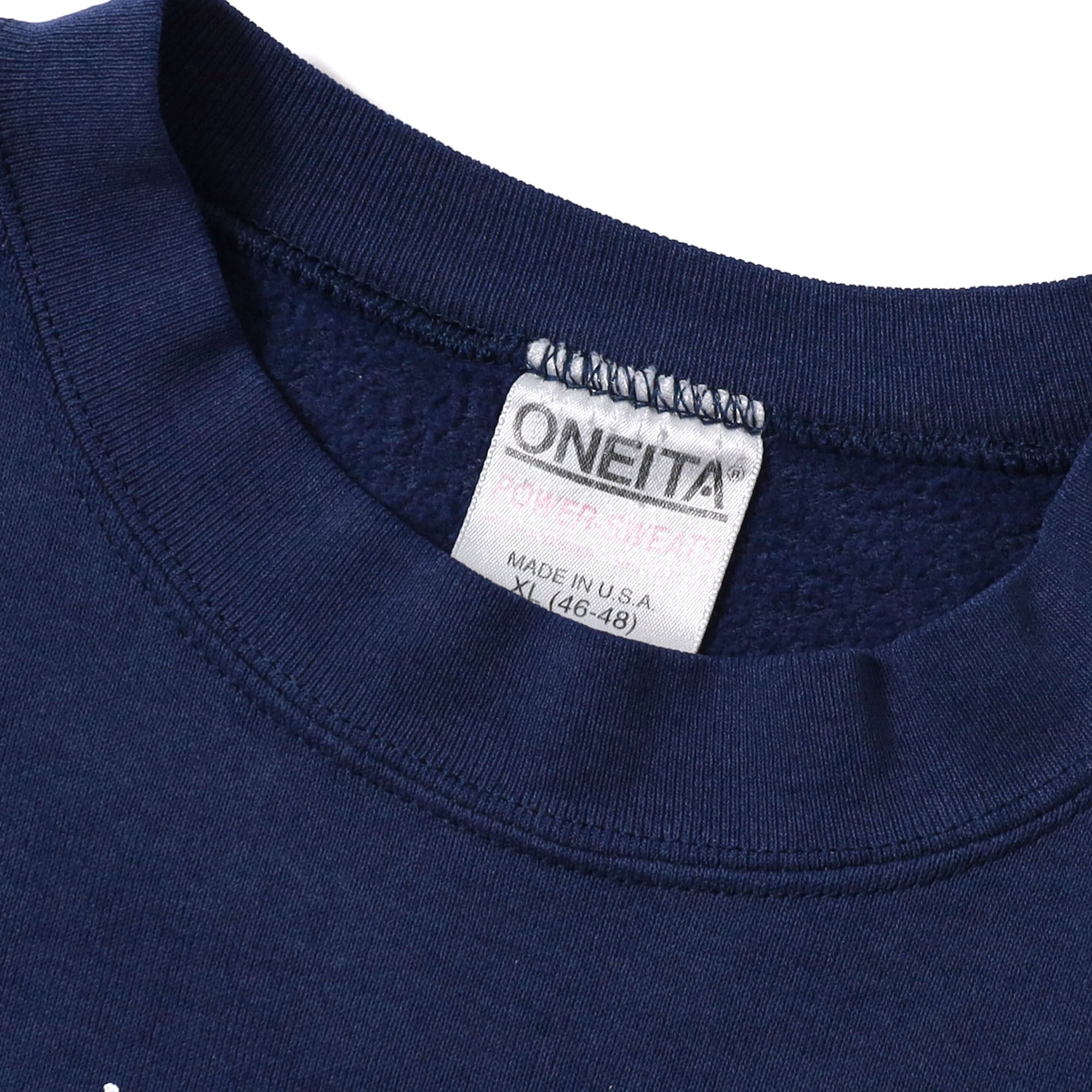 月に座る人間がプリントされたスウェット。とてもメルヘンな雰囲気ですが、個人的にとても刺さる、言葉では表現出来ない良さのあるスウェットです。こういったデザインは古着ならではというか、古着の醍醐味だなと思います。ハズしにも使える1枚です。